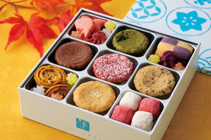 日本の伝統菓子“吹き寄せ”をモチーフに、秋の葉が風に舞い寄せられる情景をクッキーで表現しました。