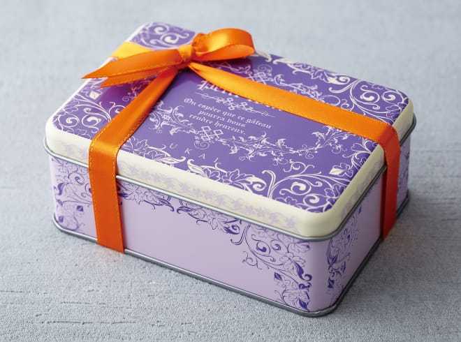 ジャック・オー・ランタンを思わせるオレンジのリボンと、月夜をイメージした紫色の缶でお届けします。秋のパーティーやお手土産に華を添える限定アイテムです。