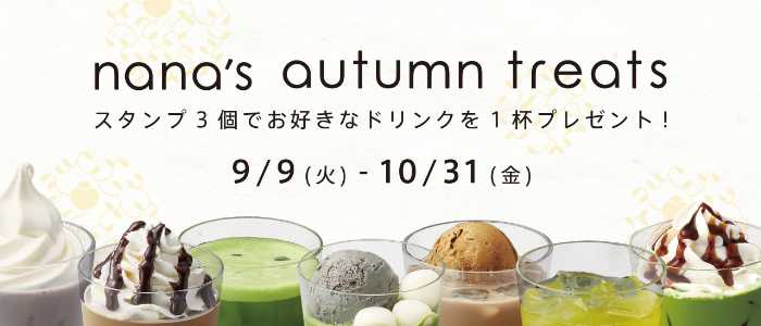 9月9日(火)〜10月31日(金)の販売期間中は、全店(一部店舗除く)でスタンプラリー「nana’s Autumn Treats」を開催。