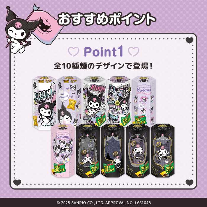 「クロミ×コアラのマーチ」は、マーチくんとクロミが扮したオリジナル描き起こしデザインを採用。全10種類のパッケージが揃い、どれも可愛らしい仕上がりです。