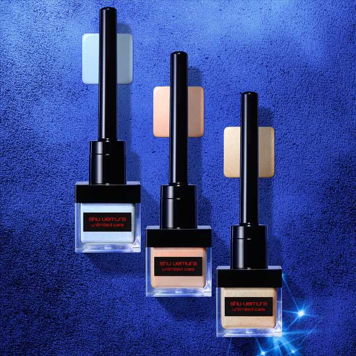 「アンリミテッド ケア ツヤ ドロップ」は全3色展開。透明感を引き出すアオタケブルー、血色感を添えるサクラピンク、そして瑞々しい輝きを叶えるコガネアイボリー。