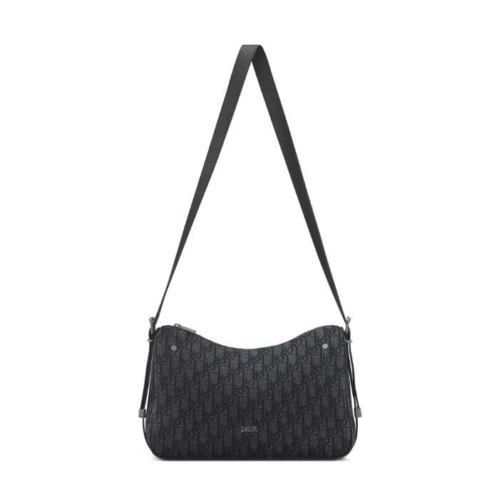 ブラック・グレー・コニャックのレザーに、象徴的なディオールオブリークジャカードを組み合わせ、スライド式金具やリベット、丁寧なトップステッチで仕上げ。