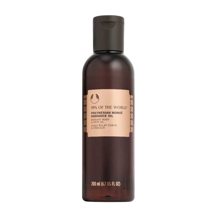 「ポリネシアン モノイ ラディアンスオイル」(200mL 5,060円)は、ココナッツオイル³やブラジルナッツオイル⁷配合で、肌と髪をなめらかに保ちます。