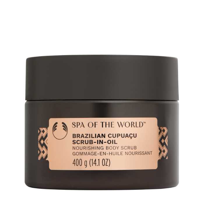 「ブラジリアン クプアス スクラブインオイル」(400g 5,940円)は、塩スクラブとクプアスバター**⁷で古い角質を取り除き、肌を輝かせる贅沢なテクスチャー。