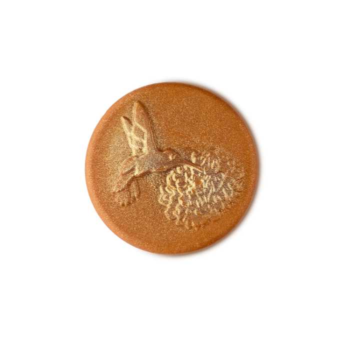 マリーゴールドとハチドリをモチーフにしたロマンチックなデザイン。¥1,400(税込)/100g