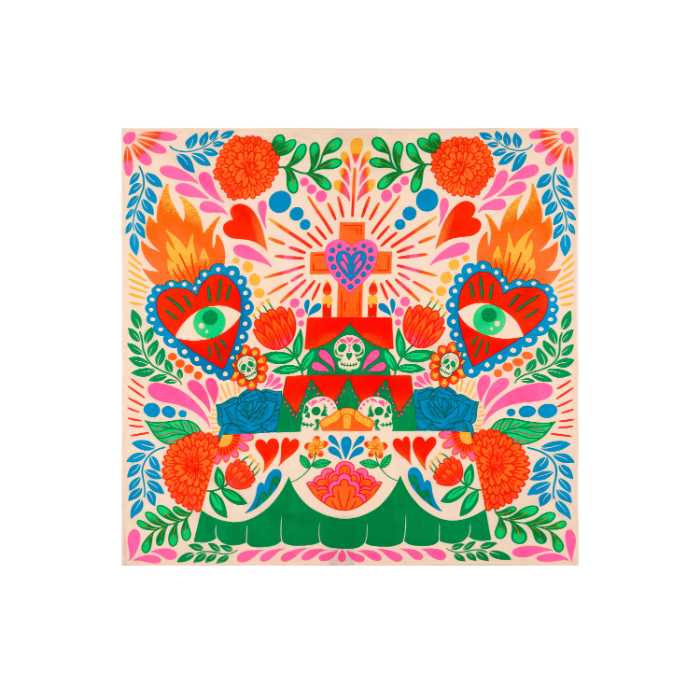 鮮やかなデザインの布製ラッピング。¥1,300(税込)/70cm×70cm
