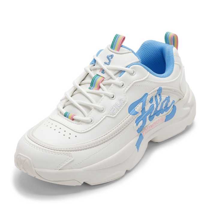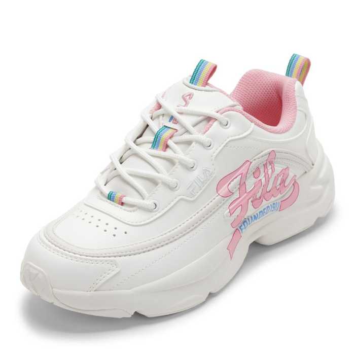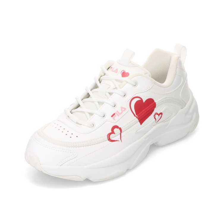 FILA「RAYTONA SCRIPT/HEART」(UFW-25078)は、パステルロゴやハートモチーフがアクセントになったかわいらしい一足。