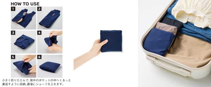 背中ポケットに収納でき、避難所でも目立たず持ち出しやすいデザイン。月1セット¥3,520(税込)で、旅行や防災リュックにも便利です。