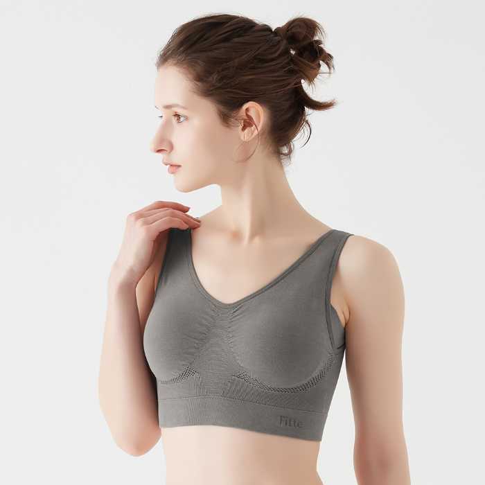 肩紐の伸びやバストの縦揺れも抑え、蒸れやすいカップ下はメッシュ仕様で通気性も◎。リラックスもアクティブもこれ一枚で対応可能です。