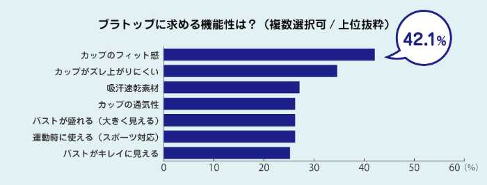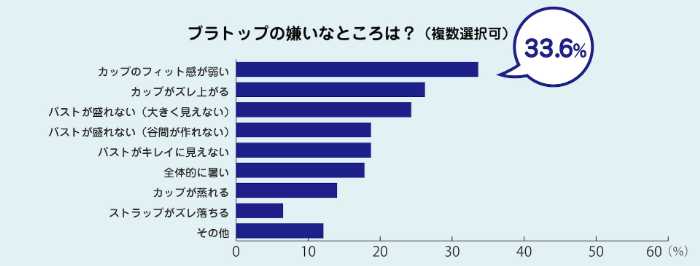 ワコールの調査(※1)では、約45%の中高生が「ブラトップを持っている」と回答。一方で「フィット感が弱い」「カップがズレ上がる」といった悩みも明らかになりました。