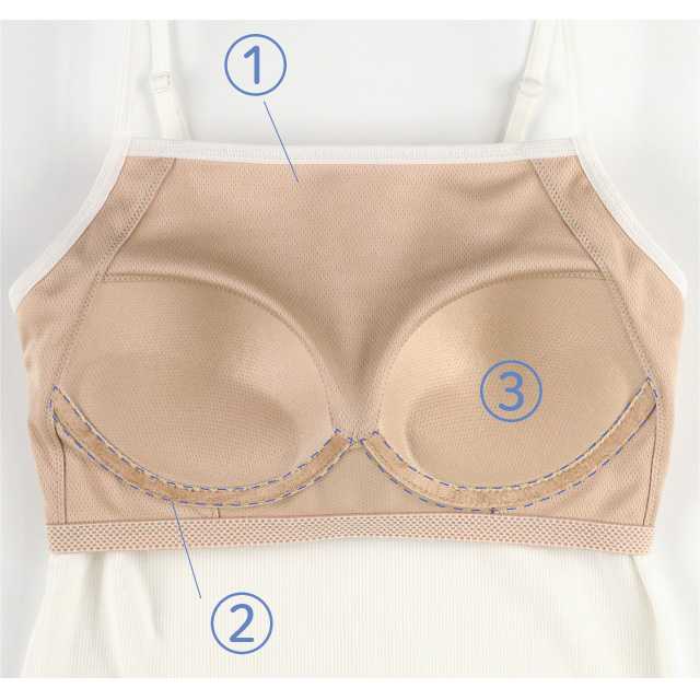 さらにカップ部分は通気性のよい素材で、ムレを軽減。細リブ素材の身生地は透け防止にも役立ち、1枚でもインナーとしても使える万能さが特徴です。