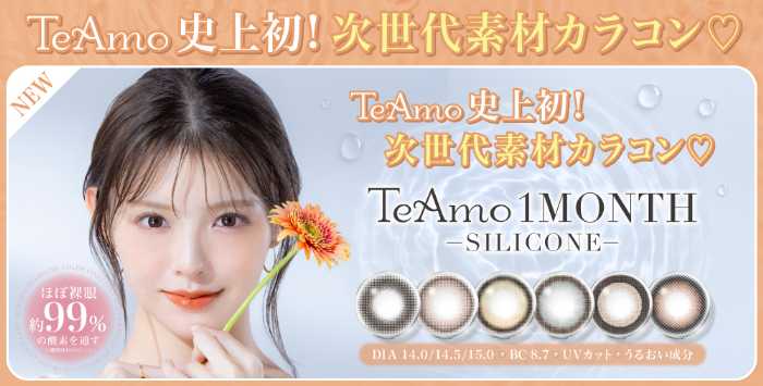 TeAmoの新作「1MONTH SILICONE」は、瞳に優しい素材と豊富なデザインを兼ね備えた、まさに理想のカラコン。