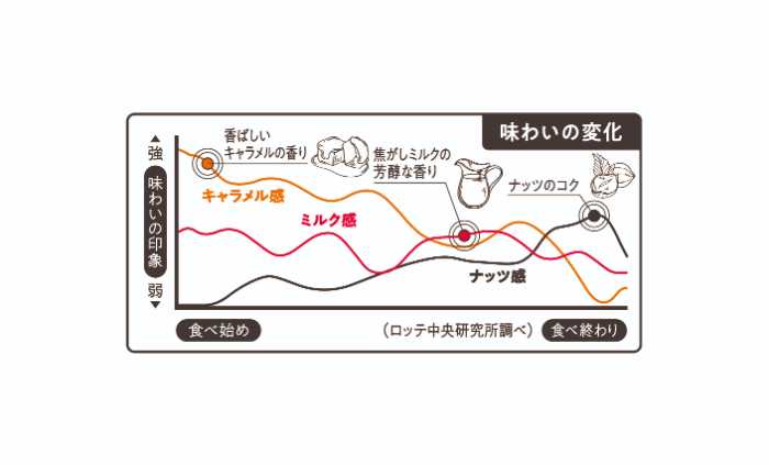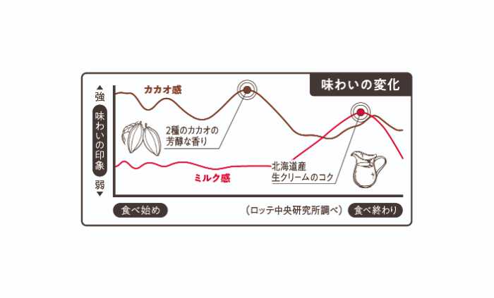食べ始めはカカオの香り、後半はミルクのコクを感じられる、ロッテ独自の特許製法「ミルクマリアージュ製法」で作られた贅沢な板チョコです。