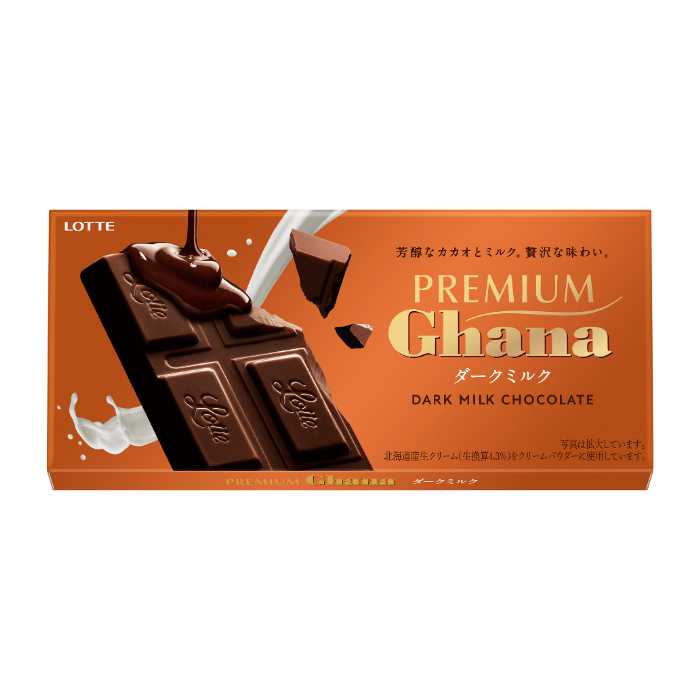 同日発売の『プレミアムガーナ ダークミルク』は、カカオ分を高めたミルクチョコに北海道産生クリームを加え、3種のミルク原料でカカオとミルクのマリアージュを実現。