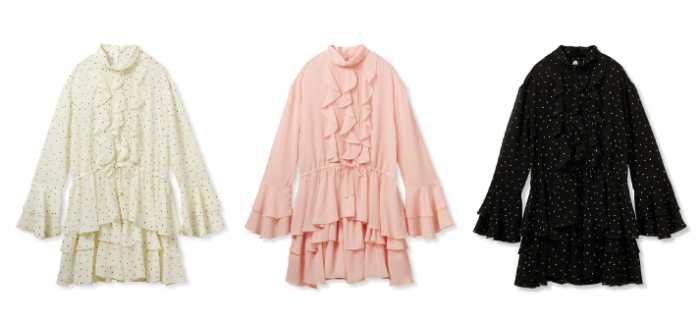 リニューアルオープンを記念して登場する店舗限定アイテムは、シフォンフリルセットアップ(24,970円税込/カラー:WHT, PNK, BLK、サイズ:フリー)。