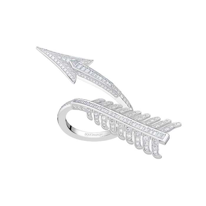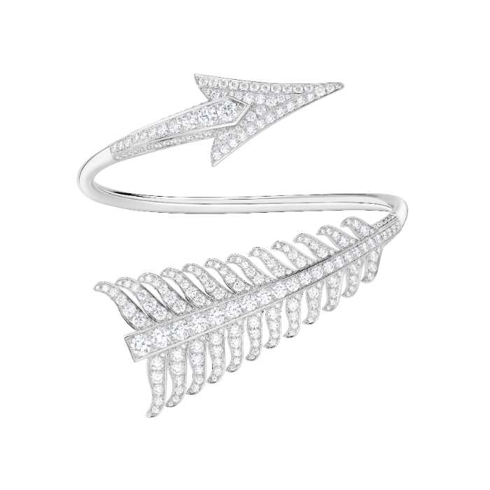 今回の「フレシュ」は、そのヘリテージを受け継ぎながら、直線と曲線が織りなすモダンなジュエリーへ。矢羽根や矢じりを精巧に再現したデザインは、力強さと洗練さを兼ね備えています。
