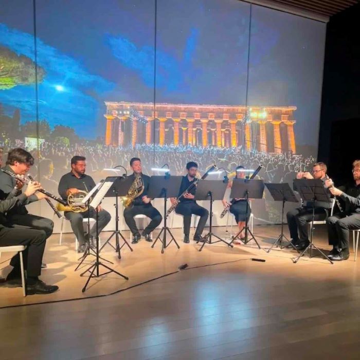 イタリアパビリオン劇場では、ルイジ・チェルビーニ青少年オーケストラの木管八重奏団による演奏が披露されました。