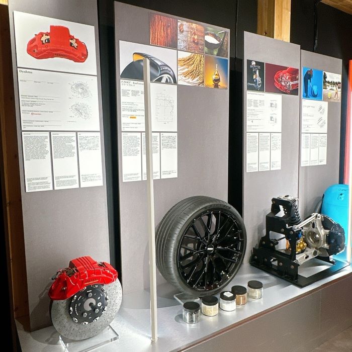 イタリアが誇る自動車産業の技術も紹介されています。ブレーキシステムやタイヤ、最新素材の展示を通じて、安全性とデザイン性を兼ね備え最先端のモビリティ文化を発信。伝統と革新の両輪で進化を続けるイタリアの姿が浮かび上がります。