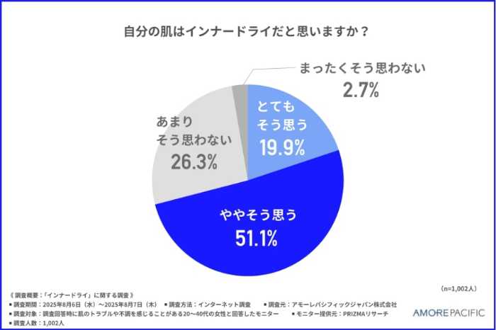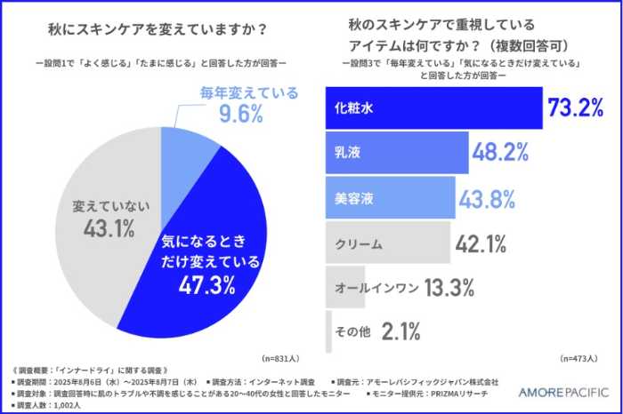 秋になると約8割の女性が「肌の不調」を感じ、その中でも乾燥や肌荒れが上位に。さらに調査では約7割が「自分はインナードライ」と自覚していることが明らかになりました。