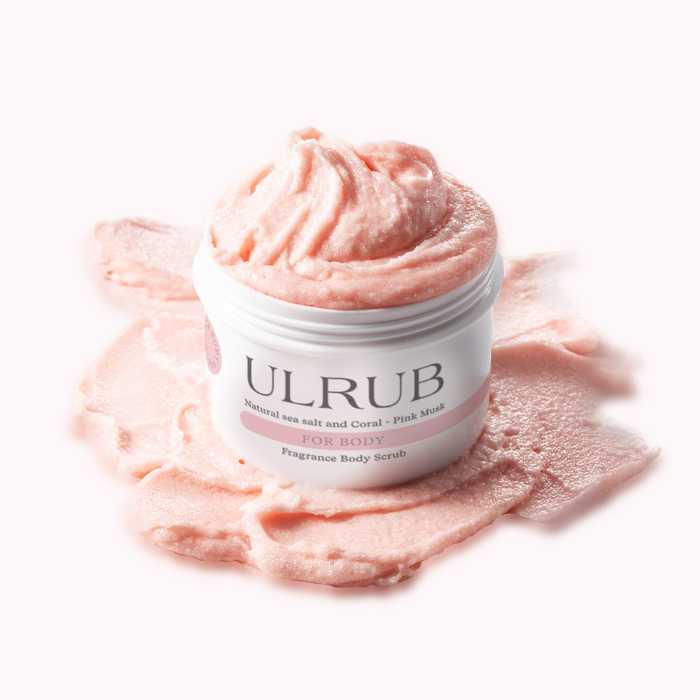 ULRUBボディスクラブ[Pink Musk]は、ラベンダーやバニラ、ウッディノートが織りなす優しい甘さの香りで、リッチなバスタイムを演出。