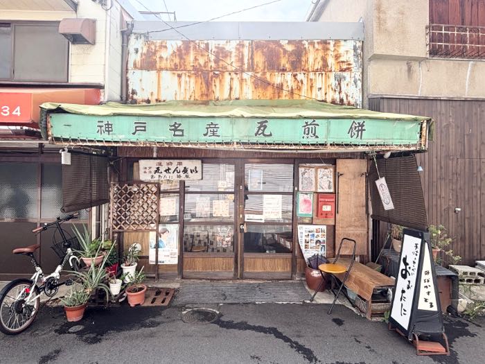 阪急春日野道駅北側にあるかすがの坂を左に入ると外観から昭和の雰囲気漂う、お煎餅屋さんがあります。創業約100年の老舗煎餅屋さん、手焼き煎餅おおたに、緑色のテントに書かれた神戸名物瓦煎餅の文字がインパクト大!初めて食べたのは幼少期、祖父に買ってもらったのが最初の出会いでした。