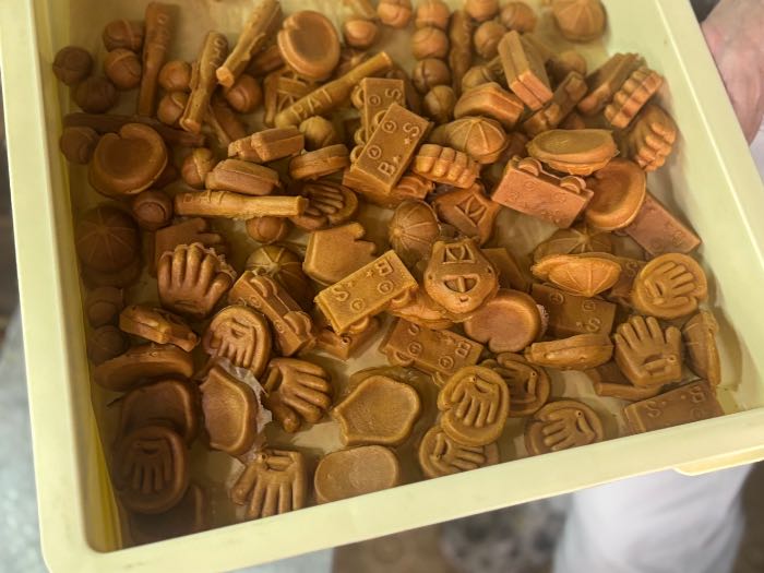 創業から受け継がれている歴史を感じる焼印の数々、今回は特別に撮影させていただきました。ご贈答やお祝い事などの焼印の入ったお煎餅もあるそうなので、特別なお煎餅の注文も可能です。