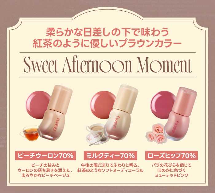 限定カラー:ミルクティー70%/ピーチウーロン70%/ローズヒップ70%
