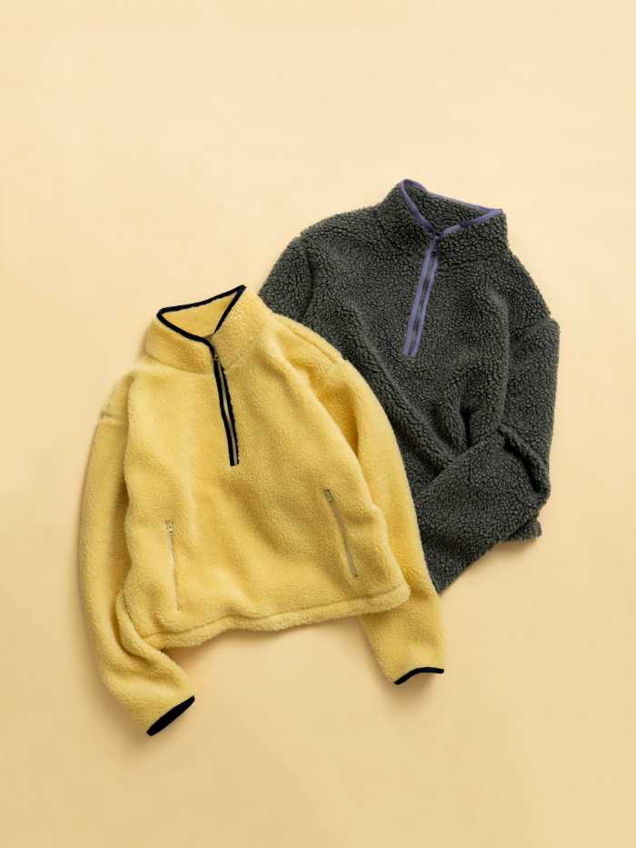「Boa Harf Zip Jacket」(50,600円税込)はイタリア製のウール混素材を使用し、発色の美しいイエローとライトグレーがラインアップ。