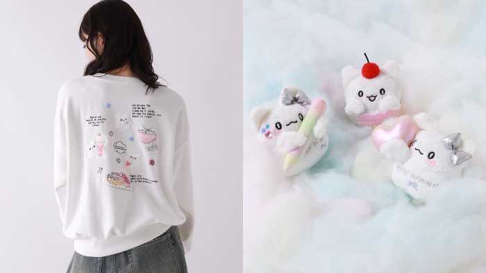 repipi armarioは原宿を舞台に「はなまるおばけ」とのコラボで、ワッペンシシュウスウェット(5,489円/S~L)やマスコットチャーム(1,980円/全3種)が展開されます。