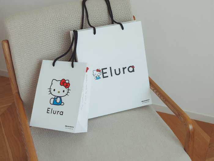 Eluraは「おとなが着たいレトロHello Kitty」をテーマに【HELLO KITTY】Vネックカーディガン(11,000円/FREE)や巾着セット(3,300円/全2種)が登場。