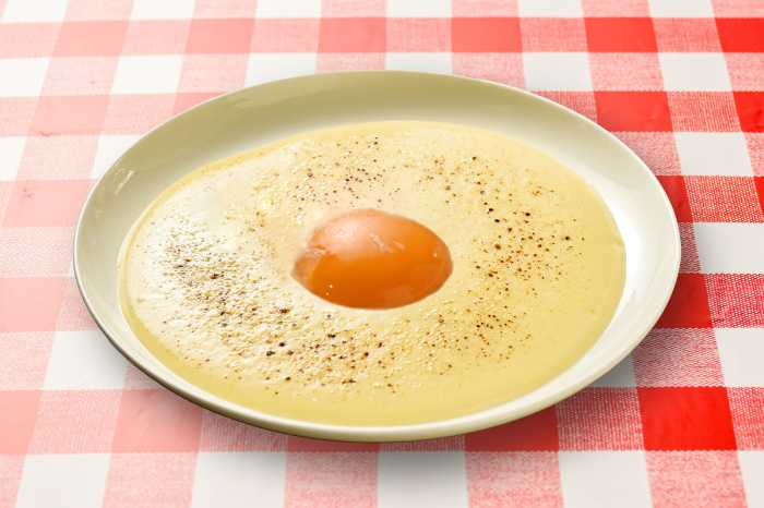 お皿の中央にトッピングされた卵黄は、満月を思わせる美しいビジュアル♡とろりとした黄身がチーズソースと溶け合うことで、味も見た目も贅沢な一皿に。