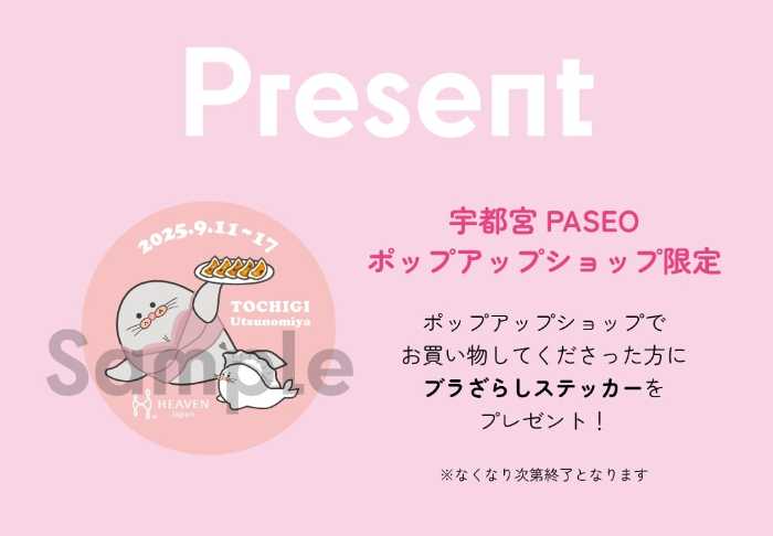 ご購入者にはポップアップ限定の「ブラざらしステッカー」をプレゼント♡開催地ごとに異なるデザインで、コレクションしたくなる可愛さです。