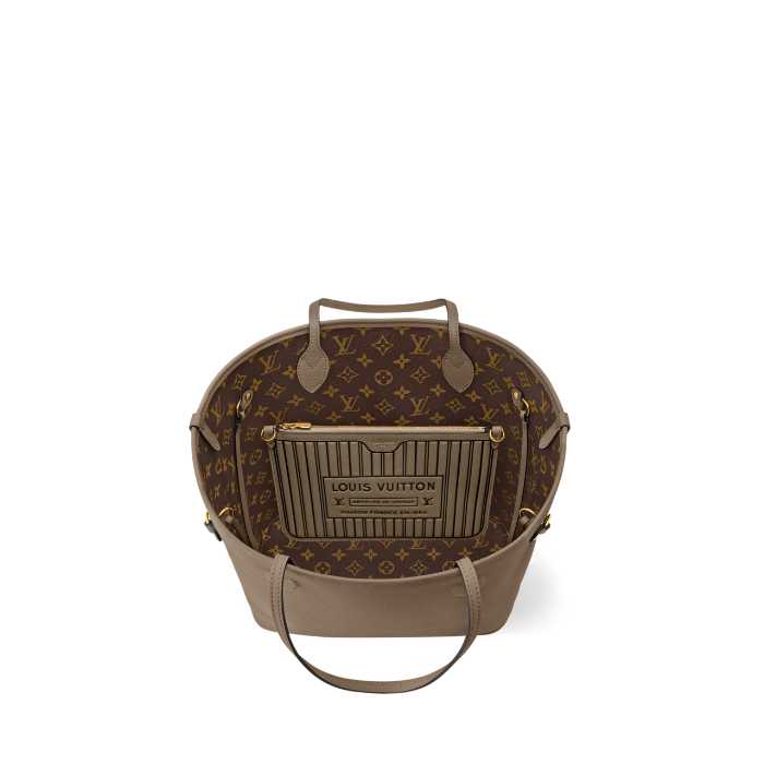 「ネヴァーフル·インサイドアウト BB」(388,300円)は、ライムストーンのレザーとモノグラム·キャンバスをリバーシブルで楽しめるデザイン。
