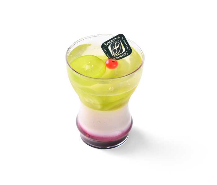 〈日本橋 千疋屋総本店〉の「シャインマスカットとアーモンドミルクのヴェリーヌ」(972円)は、カシスソースとジュレの彩りが華やか。