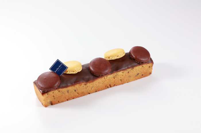 〈ジャン=ポール・エヴァン〉の「ティータイム ドゥスール」(3,456円)は、芋蜜を染み込ませたケークにビターチョコを重ねた贅沢な一品。