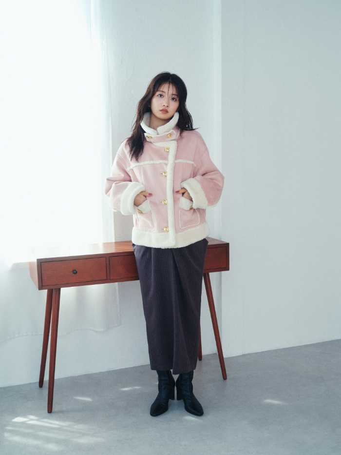 金ボタンが上品なアクセントのボアジャケットは、裏地まで全面にボアを施した高い保温性が魅力。