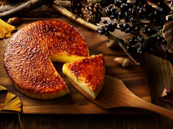 なめらかで濃厚なチーズのコクが広がる一方、表面はブレンドシュガーをキャラメリゼして仕上げ、香ばしいほろ苦さと「サクッ」と砕けるブリュレの食感を楽しめます。