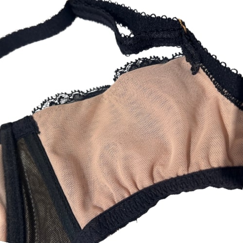 さらに希少なリバーレースを使用し、日本国内で丁寧に仕立てることで、繊細さと耐久性を両立。見た目だけでなく機能美を追求し、脱いだ瞬間も美しく整う下着を実現しました。