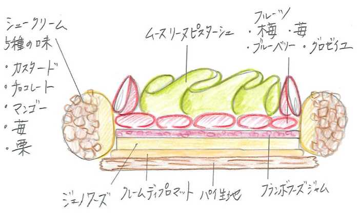 「サントノーレピスタチオフランボワーズ」(7,000円・直径約15cm)は5種類の味を楽しめるシューがポイント。