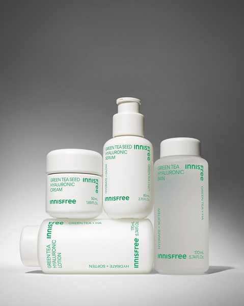 イニスフリーを象徴する「グリーンティーライン」は、16種類のアミノ酸を含む独自の美容茶葉から生まれた保湿成分を贅沢に配合。