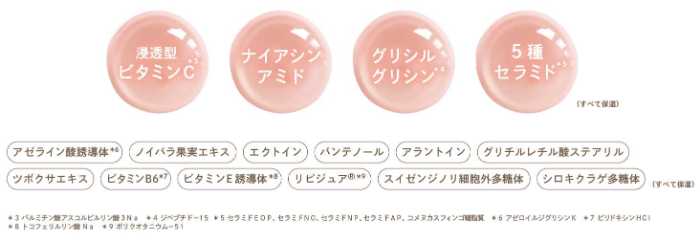 浸透型ビタミンC1、ナイアシンアミド、5種のセラミド3など20種の美容液成分*4を贅沢に配合。