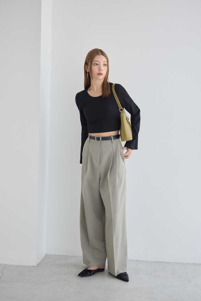 一方『カップ イン クロップドT ロング』は、短すぎないクロップド丈でボディラインを美しく見せつつ、程よい肌見せでヘルシーに♡ 長めのフレアスリーブが女性らしさを引き立て、旬のスタイルにぴったりです。