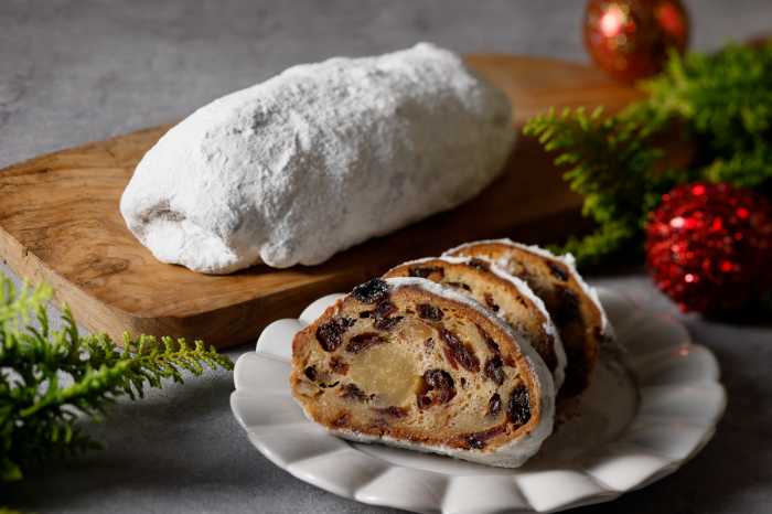 ドイツの「シュトーレン」はラム酒漬けのフルーツとナッツ入りで、日ごとに香りと味わいが深まる贅沢な逸品(¥2,000)。
