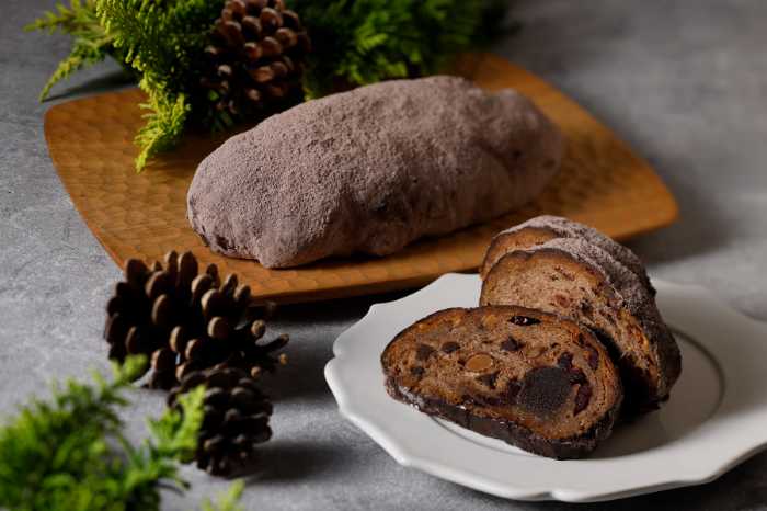 チョコレートシュトーレンはココア生地とショコラ入りマジパンでさらにリッチな味わい(¥2,200)。