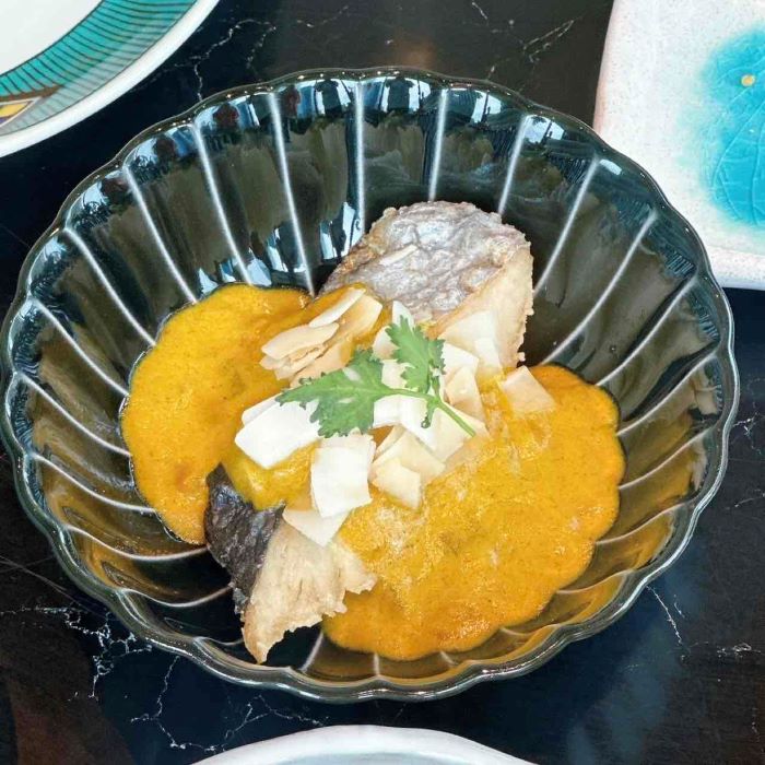 まろやかで優しい甘さのカレーは、さわらと相性抜群。仕上げに散らされたドライココナッツが、風味に軽やかなアクセントを加えています。