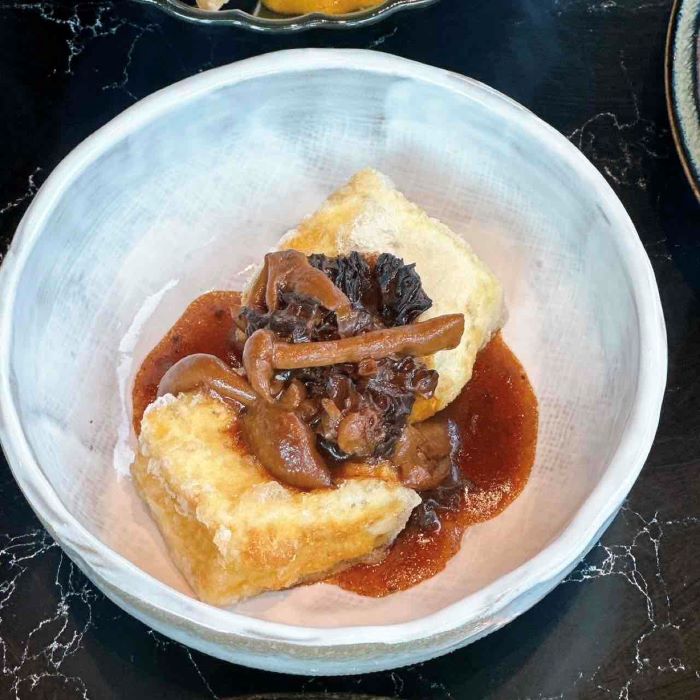 《トリュフとモリーユ茸の煮込み豆腐》