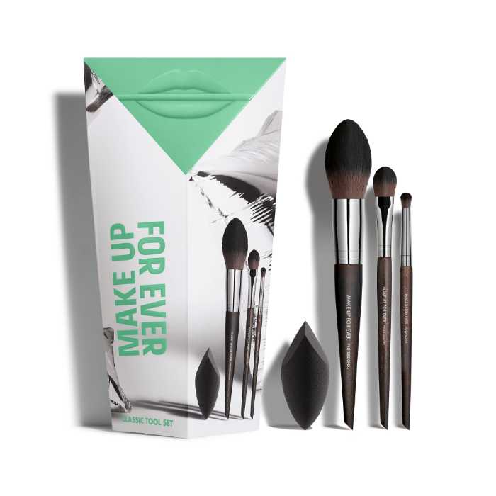 日本限定。ブラシ3本+メイクアップブレンダーの豪華セット。