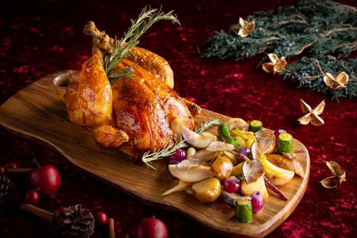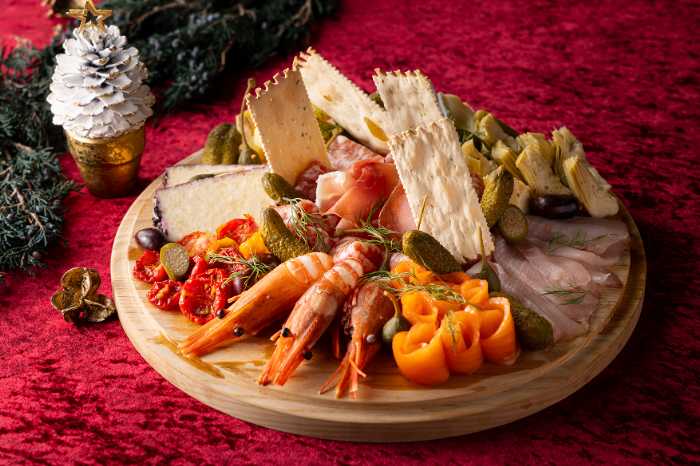 ローストチキンとトリュフ(18,360円)、アンティパストボックス(5,184円)、キャビアやサーモングラブラックス(各4,428円)など、家族や友人との集まりを一層華やかに彩ります。