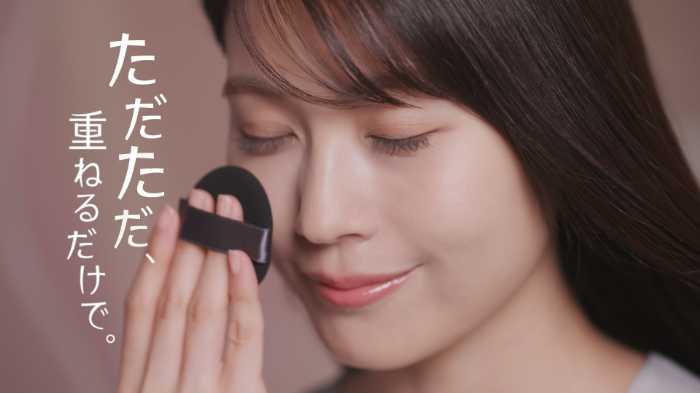 新CMでは、有村架純さんが「クッションには、テクニックはいらない」と宣言。ポンポンと重ねるだけで美しいほのつや肌が完成する様子を、大胆なカメラワークで表現しています。