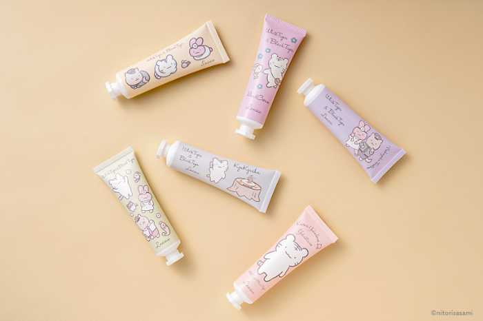 ハンドクリームは、えびちりになったブラックタイガーを救うホワイトタイガーや、うさぎ先生、犬のおまわりさんなど作中の人気キャラクターをフィーチャー。